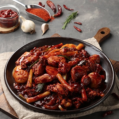 동궁 고추장찜닭 : 고추장과 파프리카로 색과 매콤한 맛을 더한 찜닭