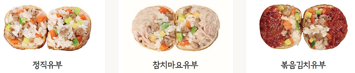 참치마요유부 (4,200원) : 유부초밥에 어울리는 참치마요를 위해 연구한 비법참치마요 필링을 채운 유부초밥