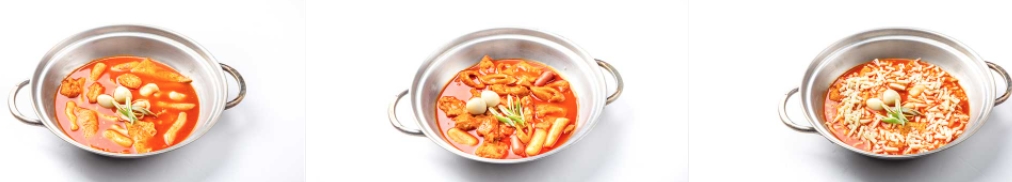 치즈떡볶이(6,900원) : 100% 모짜렐라치즈를 듬뿍 넣어 고소하면서 부드러운 치즈국물떡볶이.