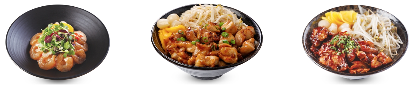 간장새우 덮밥(9,900원) : 쫀득한 식감의 새우살을 간장 양념에 숙성시킨 별미 중의 별미 덮밥