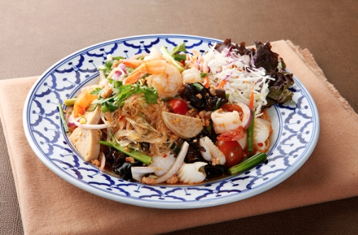 얌운센(15,000원) : 태국당면을 새우, 태국소시지와 땅콩, 토마토 피시소스와 라임소스로 무친 새콤달콤한 샐러드