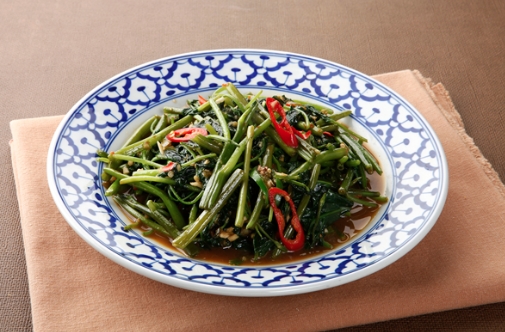 공심채볶음(15,000원) : 공심채(모닝글로리)를 마늘과 굴소스를 넣고 볶은 요리