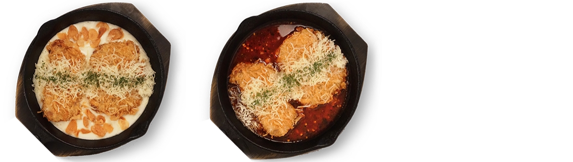 갈릭 치즈돈카츠(13,000원) : 고소한 크림 소스와 마늘의 조화. 푸짐한 치즈가 듬뿍 들어간 프리미엄 카츠