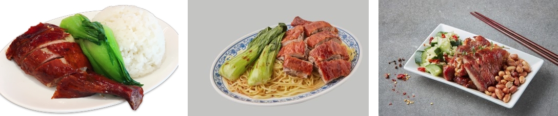 오리구이 덮밥(11,000원) / 오리구이 로미엔(11,000원) / 허니소스 돼지고기 "챠슈"(15,000원)
