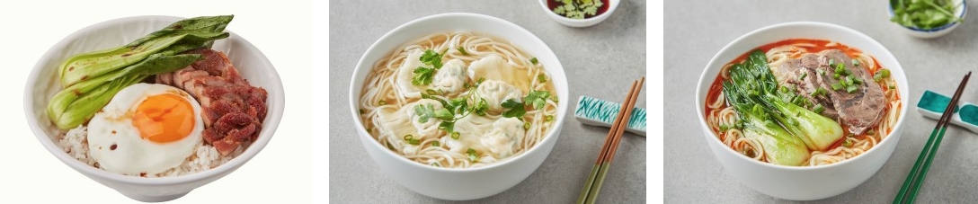 돼지고기 챠슈 덮밥(8,000원) / 완퉁탕쌀면(7,000원) / 우육탕면(9,000원)