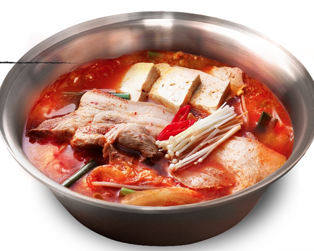 生 돼지 김치찌개(7,000원) : 1% 최고급 돼지고기, 완벽한 숙성법으로 숙성한 김치, 천연 야채 육수로 끓인 김치찌개