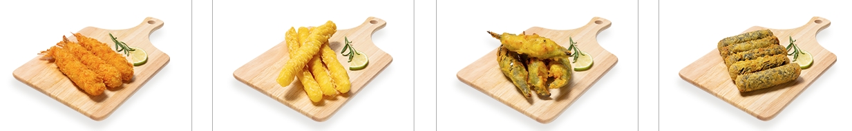 왕새우튀김 3개(5,000원) / 오징어튀김 4개(5,000원) / 고추튀김 4개(5,000원) / 김말이튀김 5개(3,000원)
