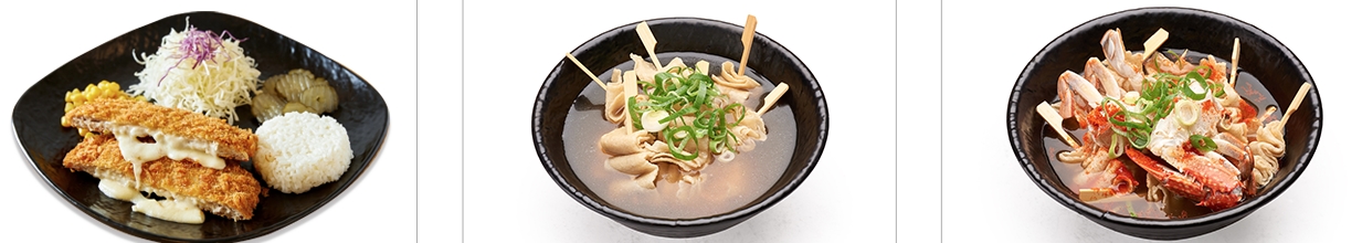 치즈돈까스(7,500원) / 어묵탕(5,000원) / 매운꽃게어묵탕(6,500원)