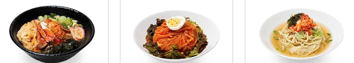 얼큰꽃게우동(8,000원) / 쫄면(5,000원) / 김치냉면국수(7,000원)
