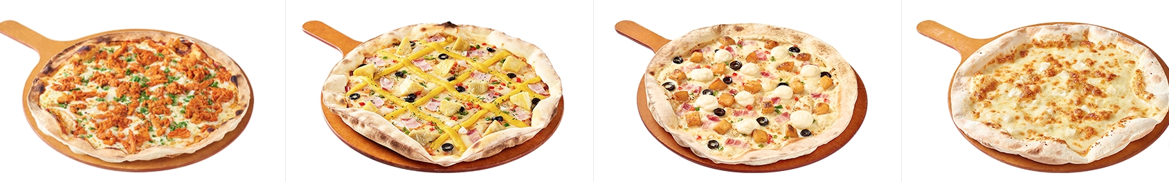 베이컨 스노우볼 피자 : 신선한 크림치즈와 베이컨을 토핑한 단짠단짠 피자