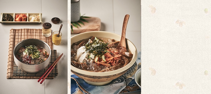 막국수 : 구수하고 담백한 메밀면에 도토리편백집 양념을 더해 감칠맛이 더욱 풍성한 메뉴