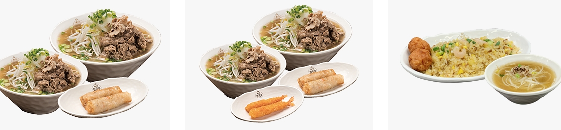스페셜2인세트 2번 : 쇠고기쌀국수1 + 쇠고기쌀국수곱배기 + 짜조2개 + 왕새우튀김2개