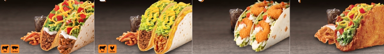 수프림 타코(비프,카니타스) / 더블 치즈 데커타코(비프, 치킨) / 쉬림프 타코 / 타코 치킨
