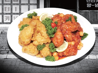 쌀통닭 반반 : 인기메뉴 쌀통닭과 양념을 반반씩 동시에 즐기세요!