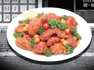 스윗뿜뿜 : 바삭하게 튀겨낸 쌀통닭에 달콤한 스위트 칠리소스가 듬뿍~