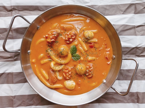로제떡볶이 : 부드러운 크림과 인정국물떡볶이 특제소스와 어울러진 고소하면서도 매콤한 로제 떡볶이
