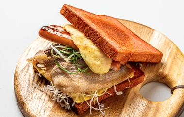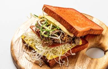 파절이삼겹토스트 : 파절이와 삽겹살을 더해 국민 조합을 더한 토스트