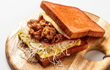 제육토스트 : 매콤한 제육볶음을 넣어 쌈을 싸먹는듯하게 즐길 수 있는 메뉴