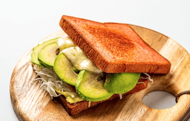 아보카도토스트 : 토스트안에 슬라이스 아보카도를 넣어 기름지고 담백하게 맛있는 메뉴