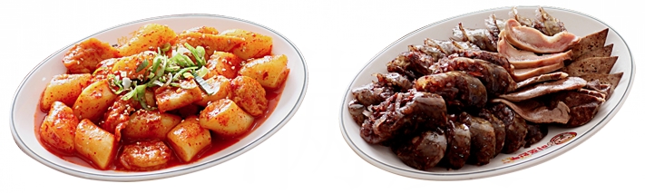찹살순대 : 신선한 야채와 찹쌀로 맛을 내어 막순대가 아닌 찰순대로 돼지냄새를 잡아 순대맛을 살린 메뉴
