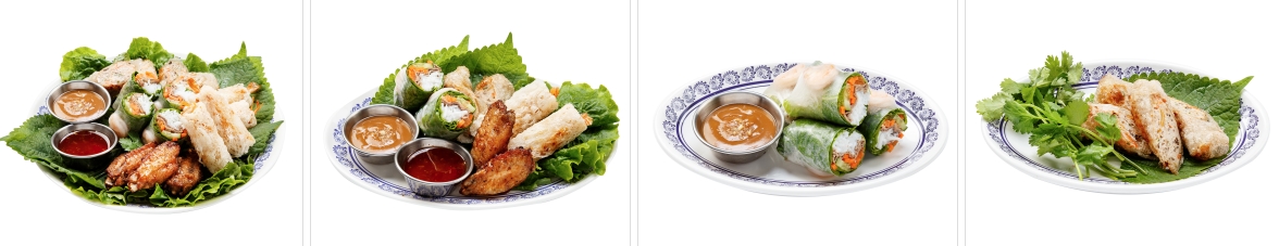 스프링롤 : 양지와 쌀면, 깻잎, 당근, 오이를 찐 새우와 함께 라이스페이퍼에 싼 요리로, 피넛소스와 함께 즐기는 메뉴