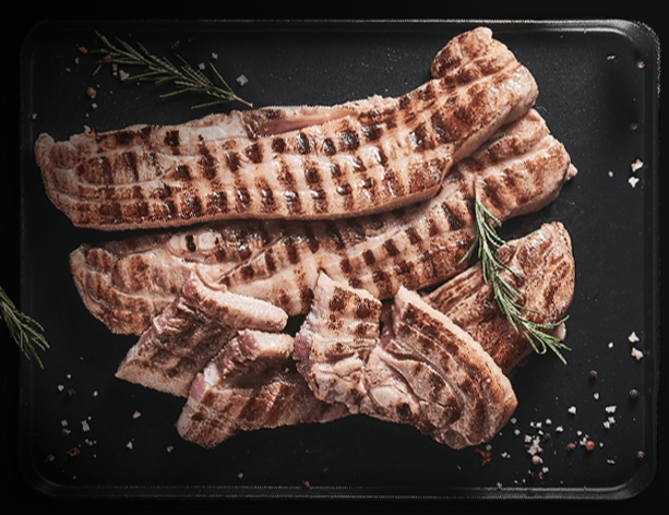 삼겹살 : 두께 20mm로 살코기와 비계의 황금비율을 자랑하는 삼겹살을 육즙과 육질이 살아있는 인기메뉴입니다.