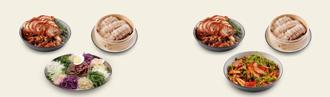 쟁반국수세트 : 족발 + 보쌈 + 쟁반국수를 다양한 조합으로 즐길 수 있습니다.
