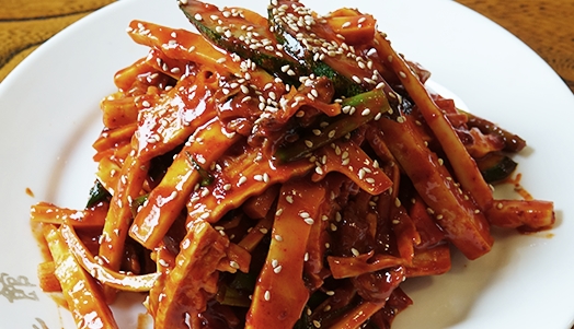 죽순회 : 죽순을 얇게 포떠서 회를 연상케 하는 죽순회입니다. 부드럽고 향긋한 음식으로 죽순을 입에넣고 씹으면 사르르 녹으면서, 죽순의 향이 입안에 퍼지게 됩니다.