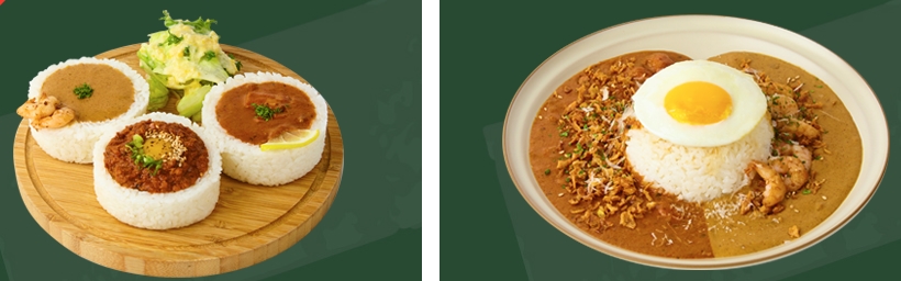 소코아 카레 : 그릇 모양 밥 틀에 담긴 소코아의 세가지 카레(토리, 에비, 키마)를 한번에 만나 볼 수 있는 시그니처 메뉴그