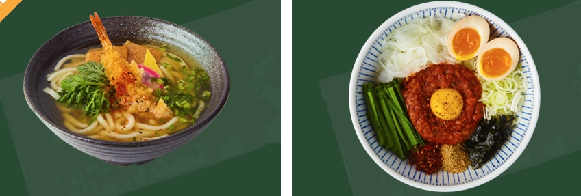 마제카레우동 : 다진고기, 부추, 양파 등 다양한 고명과 특제 소스를 우동면과 함께 비벼 먹는 마제카레우동