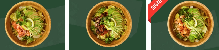 당일 직접 손질하여 곤부지메(다시마) 숙성한 연어와 채소, 담백한 아보카도 그리고 소코아의 특제 소스가 뿌려진 냉우동