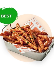 프레시 갈릭소스와 에이지드 체다지즈를 듬뿍 올린 시그니처 감자 프라이즈