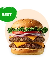 육즙 가득한 비프 패티와 체다치즈를 더블로 쌓아 육즙을 가득 느낄 수 있는 슈퍼두퍼 대표 버거