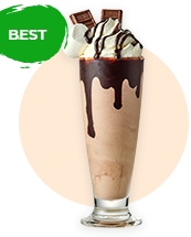 초코 쉐이크에 초코 드리즐과 마쉬멜로우, 초콜렛을 더해 진한 달콤함을 즐길 수 있는 쉐이크
