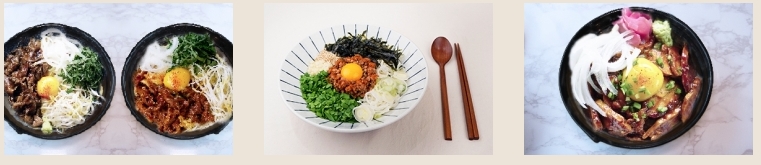정통방식으로 만든 고기 소보루와 아삭하게 씹히는 채소, 부드러움과 풍미 가득한 계란 노른자까지 더한 일본식 비빔밥!