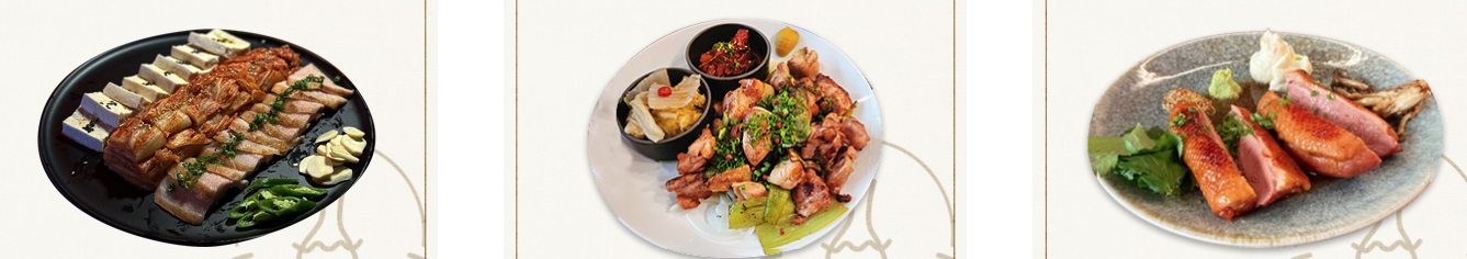 항정살 삼합 : 숙성 간장에 장시간 삶아내어 맛을 낸 항정살 수육