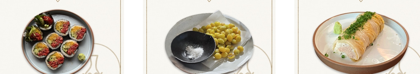창난젓 까나페 : 크래커 위에 창난젓, 크림치즈, 올리브 등을 얹어먹는 일본식 전채요리