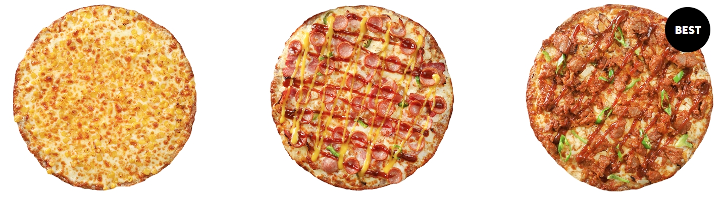 바짝불고기피자 : 바싹 익힌 불고기의 풍미를 입안 가득 느낄 수 있는 자가제빵 선명희피자의 야심작!