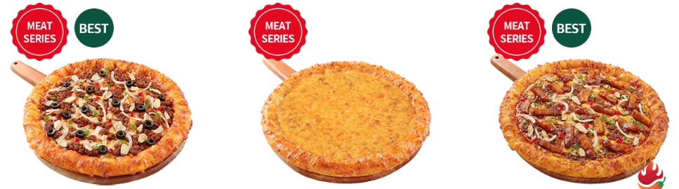 수제 미트 소스와 골든 치즈의 묵직한 만남! 트리플 치즈(체다슈레드+슬라이스체다+ 모짜렐라)로 극강의 진한 치즈 맛을 느낄 수 있는 치즈 피자