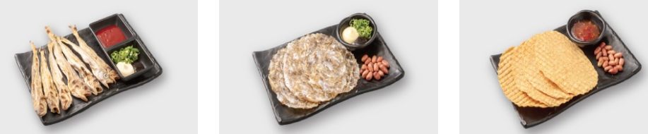 불꽃송이 오징어 : 통오징어를 불꽃처럼 튀겨 맥주안주로 짭쪼름한 맛이 맥주와 딱!