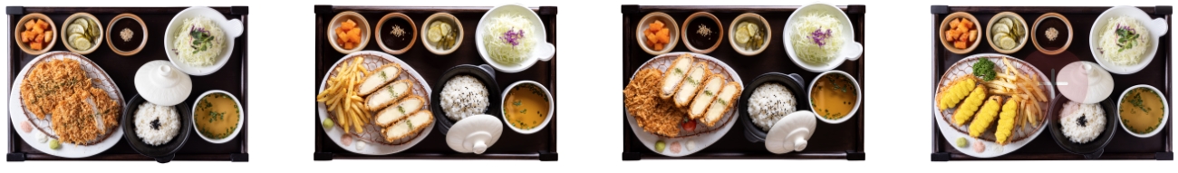 모둠 카츠 : 등심돈가스와 큐브치즈카츠, 새우튀, 감튀김까지 맛보실 수 있는 메뉴입니다.