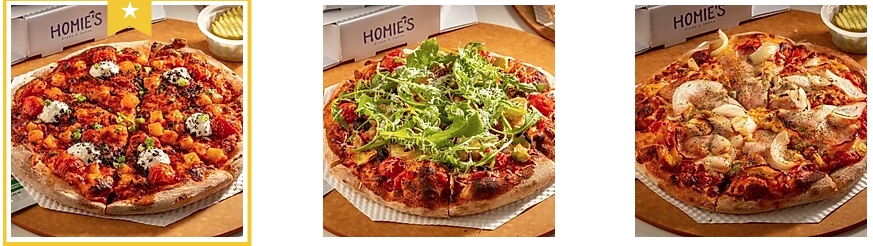 호미스 치즈 : 100% 자연모짜렐라, 고다, 페코리노등 치즈와 수제 토마토소스의 풍미를 느낄 수 있는 피자