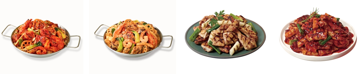 로제마라샹구이 : 숯불향 가득한 구이 치킨과 새우, 푸주, 분모자, 청경채 등 마라샹궈 재료를 특제 로제마라 소스에 볶아 비교마라! 로제마라 숯불치킨 탄생!