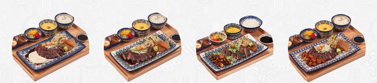 미도인 등심 스테이크 : 부드러운 등심 스테이크와 진한 육수로 우려낸 단호박 스프, 아지다마고의 한상차림