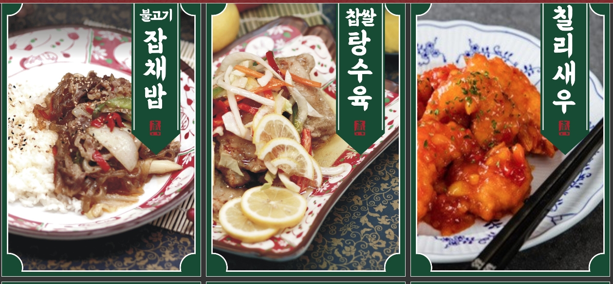 고추잡채 : 고추와 청피망, 홍피망을 채를썰어 최상급 국내산 돼지고기와 함께 고추기름으로 볶아낸 메뉴