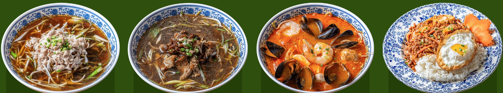 똠얌 칠리 쌀국수 : 똠얌 육수 베이스의 쌀국수로 다양한 해산물이 들어가 깊은 국물 맛이 우러나오고 시원한 쌀국수